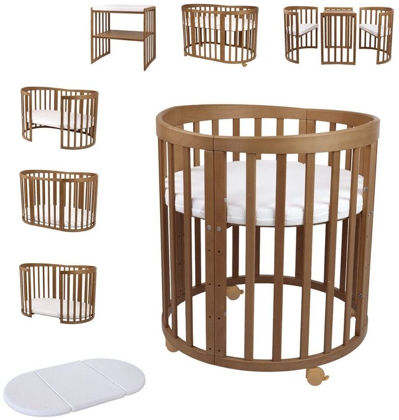 | Name | Waldin Babybett Mobiles Babybett OWAL aus Holz 7in1 mit Matratze, mitwachsend |