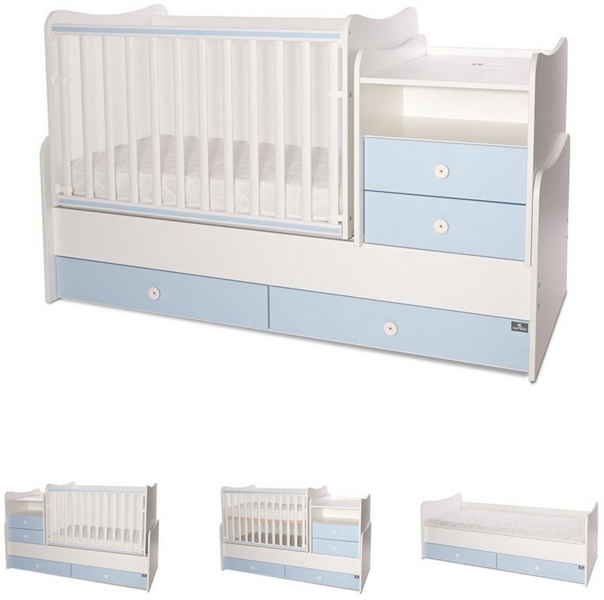 Lorelli Baby- Jugendbett Combo umbaubar 2 Kinder gleichzeitig Schaukelfunktion weiß blau