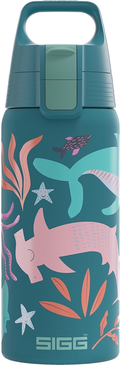 Wir präsentieren: die coolsten Trinkflaschen für Kinder auf dem Markt! Die Kinder Trinkflasche Shield Therm ONE ist mit ihrem innovativen Verschluss, dem ONE Top, leicht zu öffnen und zu schliessen und dabei stabil genug, um auch mal einen Sturz wegstecken zu können, ohne auszulaufen. Die vakuumisolierte, kupferbeschichtete Doppelwandkonstruktion hält die Lieblingsgetränke Deines Kindes für unglaubliche 36 Stunden kalt (bei 0.5 L). Viel cooler geht es nicht. Selbstverständlich ist sie durch ihre isolierende Wirkung auch für Heissgetränke bestens geeignet (5 Stunden bei 0.5 L). Was die Optik angeht, hat jedes Kind seinen eigenen Geschmack, daher haben wir für eine grosse Auswahl lustiger und farbenfroher Designs gesorgt. Die Kinder Trinkflasche Shield Therm ONE besteht zu 90 Prozent aus Post-Consumer-Recycling-Edelstahl und ist die umweltfreundliche Alternative zu Plastik-Einwegbehältern. Und wie alle Trinkflaschen von SIGG ist sie komplett BPA-frei und erfüllt die strengen EU-Standards für Lebensmittelsicherheit, um die Gesundheit Deines Kindes zu schützen. Mit dieser Flasche hat Dein Kind immer ein kühles und gesundes Getränk zur Hand. Eigenschaften: Edelstahl, 90% Post-Consumer-Recycling, ausgestattet mit "One Top" (Ein-Hand)-Verschluss, vakuumisoliert, kupferbeschichtet, doppelwandig, hält die Getränke 36 Stunden kalt und 5 Stunden warm (bei 0,5 l), stabil bei Stürzen, kein Auslaufen. Maße: 500 ml, Ø 7,3 cm, H 22 cm. Lieferumfang: 1 Trinkflasche