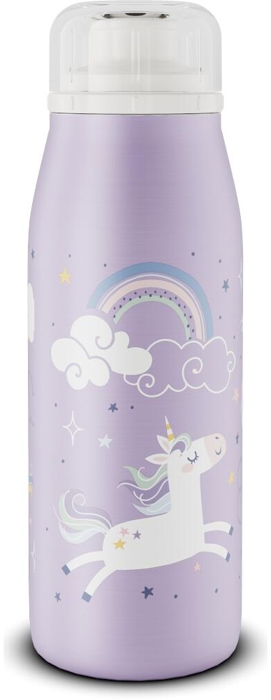 Die KIDS ISO BOTTLE 0,35 l unique unicorns ist eine Premium-Isolier-Trinkflasche, die dank ihres doppelwandigen Edelstahl-Körpers Getränke bis zu 12 Stunden heiß und 24 Stunden kalt hält. Sie ist unzerbrechlich, fruchtsäurebeständig und spülmaschinenfest, was sie ideal für den Einsatz unterwegs macht. Der Trinkverschluss und der Deckel bestehen aus hochwertigem Kunststoff, während die Dichtungen aus Silikon gefertigt sind. **Highlights** - Beste Isolierleistung: Hält Getränke 12 Stunden heiß und 24 Stunden kalt - Unzerbrechlich: Besonders stabiler Edelstahl sorgt für Langlebigkeit - Aroma Safe: Garantiert den perfekten Geschmack ohne Beeinträchtigung - Dicht bei Kohlensäure: Sicherer Transport von kohlensäurehaltigen Getränken - Spülmaschinenfest: Leichte Pflege und Reinigung durch zerlegbaren Deckel **Produkteigenschaften** - Volumen: 0,35 l - Material: Doppelwandiger Edelstahl, Kunststoff (PP und Tritan TM Copolyester), Silikon - Ø Öffnung: 50 mm - Made in Germany: Steht für beste Produktqualität