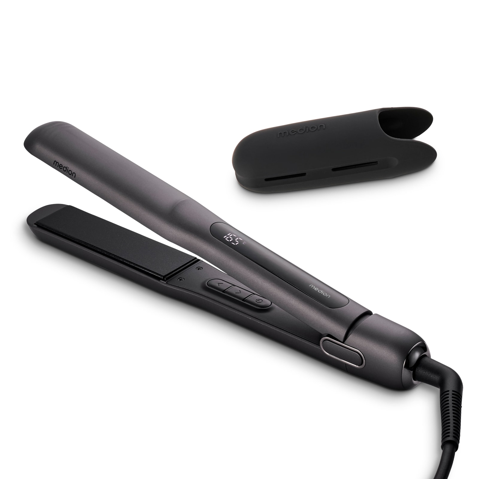 MEDION LIFE® HS1 GlätteisenKeramik-Turmalin-Platten, 5 Hitzestufen (165-210°C), Ionen-Technologie, Display, Abschaltautomatik, schwarz