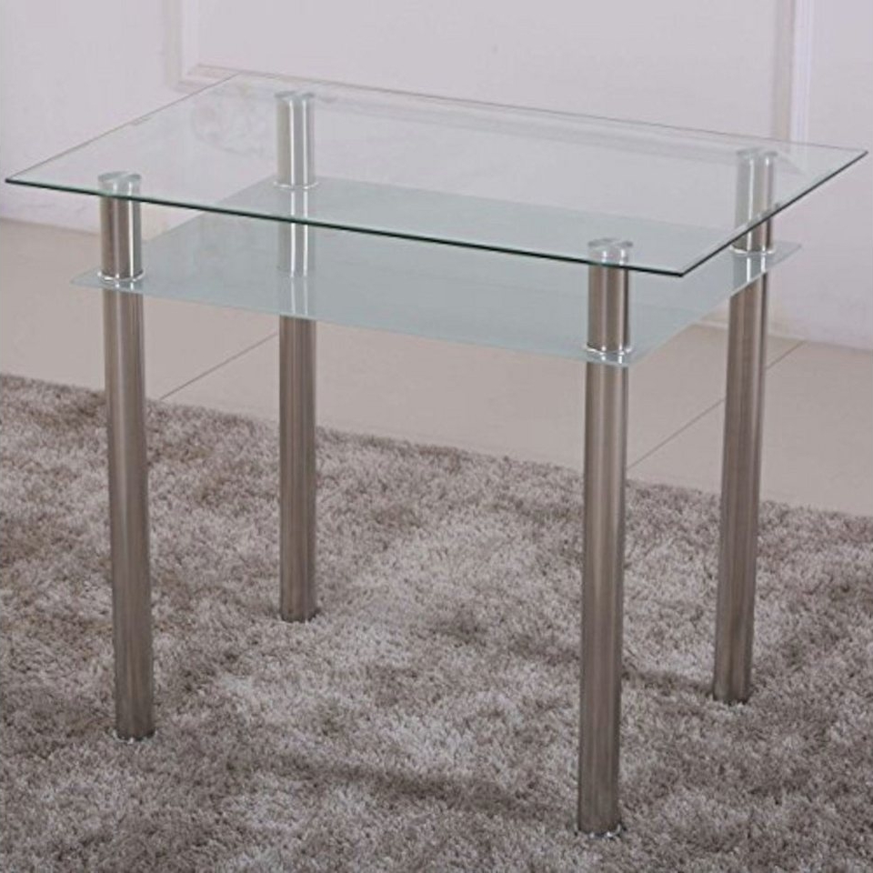 Der Esstisch aus 6 mm Sicherheitsglas mit Facettenschliff ist die ideale Wahl für Ihr Zuhause. Mit seinen kompakten Maßen von 90 x 60 x 75 cm bietet er eine großzügige Fläche zum Essen und fügt sich elegant in jede moderne Wohnung ein. Die satinierte Oberfläche sorgt für eine pflegeleichte Handhabung, während die stabile Konstruktion Langlebigkeit garantiert. **Highlights** - Modernes und elegantes Design - Große funktionale Fläche trotz kompakter Größe - Rechteckige Form passt in jede moderne Wohnung - Pflegeleichte Oberfläche und stabile Konstruktion - Zufriedenheitsversprechen: Geld-zurück-Garantie **Produkteigenschaften** - Material: 6 mm Sicherheitsglas mit Facettenschliff - Maße: 90 x 60 x 75 cm (Länge x Breite x Höhe) - Geeignet als Esszimmertisch/Küchentisch - Solide Verarbeitung für Langlebigkeit - Unternehmenssitz in Deutschland