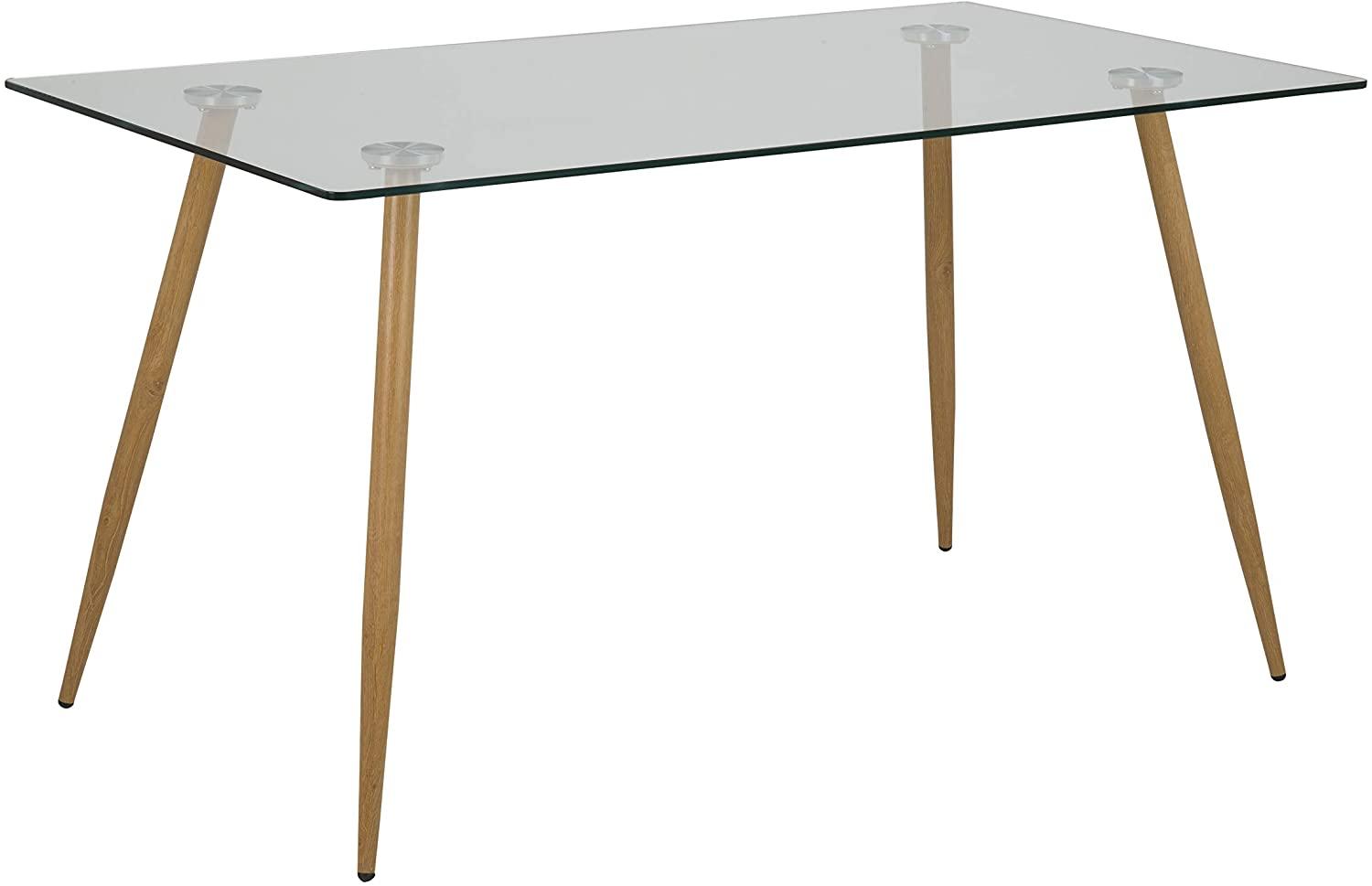 **Ausführung** Tischplatte: Klarglas Gestell: Metall in Eicheoptik Lieferumfang 1 Esstisch **Farbe:** Glas-Metall B/H/T ca. 140/75/80 cm