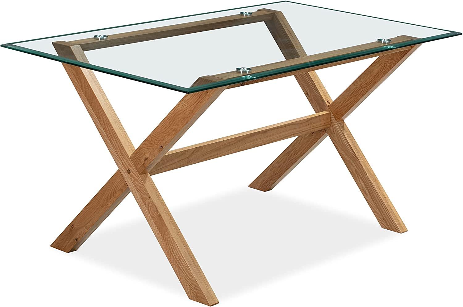 in GlastischeAmazon-Marke – Movian Esstischrechteckig, 150 x 85 x 75 cm, Eiche massiv / gehärtetes Glas