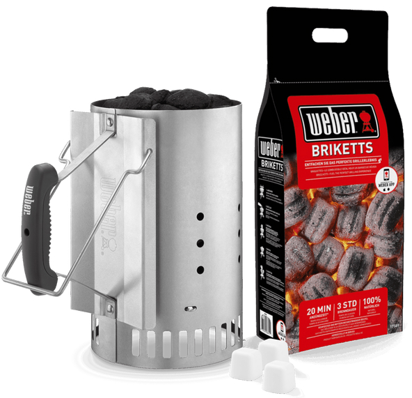 | Set | 1 Anzündkamin, 2 kg Weber Grillbriketts, 6 Anzündwürfel |