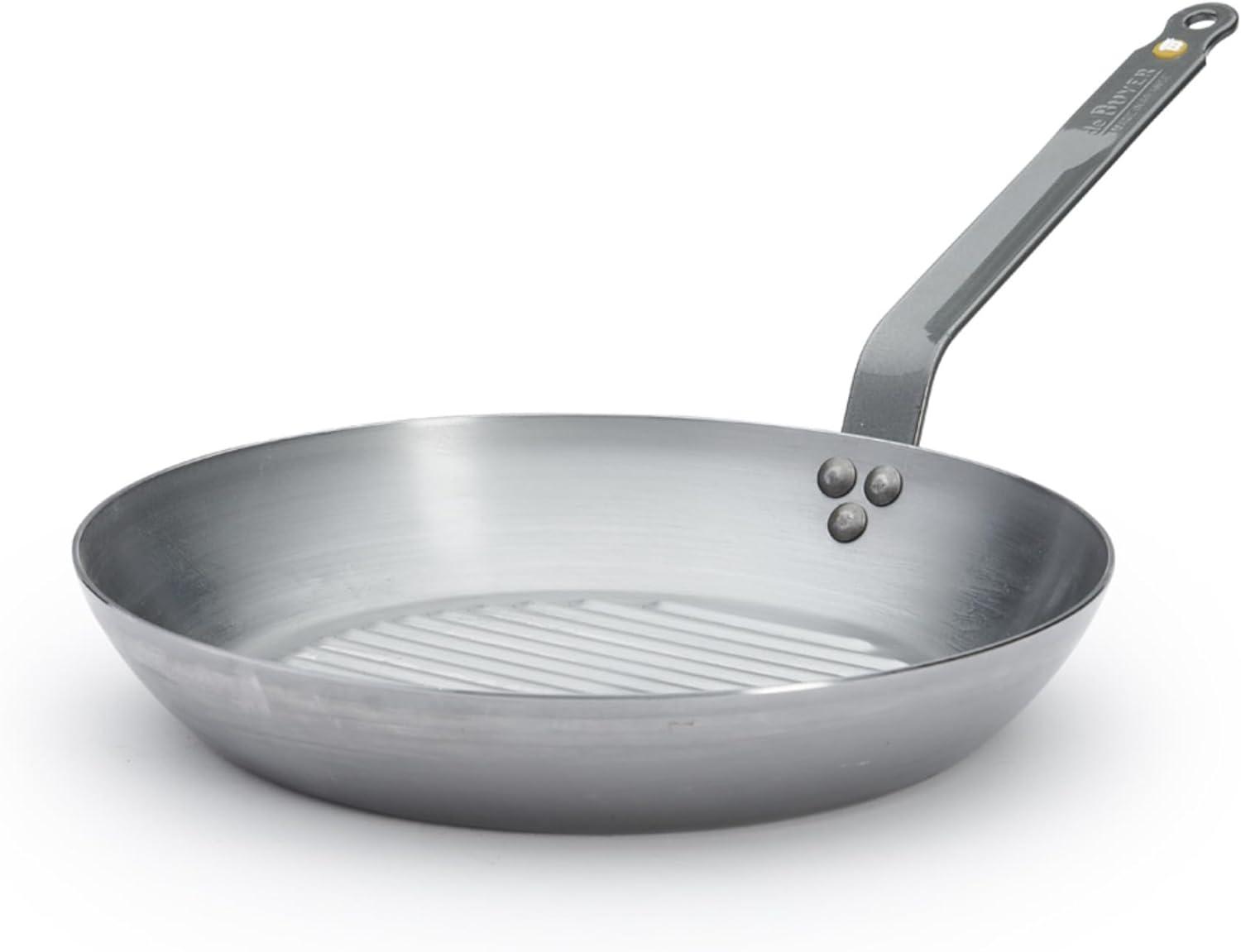 - Die De Buyer RUNDE GRILLPFANNE MINERAL B hat einen Durchmesser von 32 cm und ist ideal für Fleisch, Bratwurst, Fisch und Gemüse.