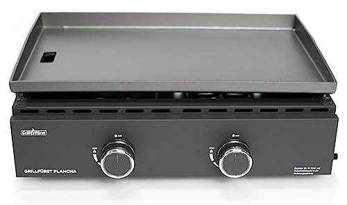 in GrillplattenGrillfürst Plancha Grill - Planchagrill mit massiver Edelstahlplancha2 Edelstahlbrenner mit insgesamt 7 kW - für Fleisch, Fisch und Gemüse, 56 x 36 cm Grillfläche