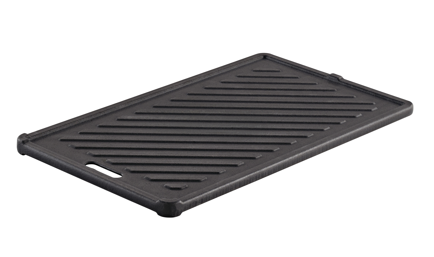 RÖSLE Grillplatte VIDERO G2-PHochwertige Grillplatte aus Gusseisen für Fleisch und kleine Grillstücke, Grillbranding, Platte beidseitig verwendbar