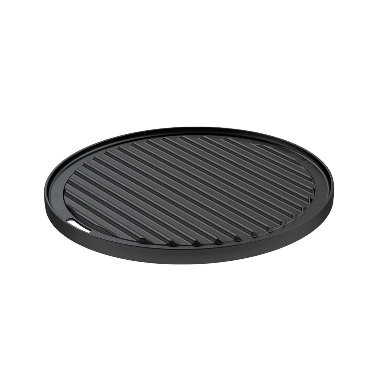 - Sie ist beidseitig verwendbar: die geriffelte Seite eignet sich für das typische Rautenmuster auf Fleischstücken, während die glatte Seite für die Zubereitung von kleinen Grillstücken wie Garnelen, Burgern, Medaillons oder Gemüse geeignet ist.