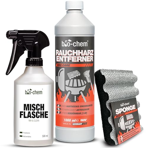 in Grillreinigerbio-chem Rauchharz-Entferner1000 ml Konzentrat für Grill und Backofen, inkl. Mischflasche und Reinigungsschwamm, extrem kraftvolle Formel für Edelstahl und Gusseisen