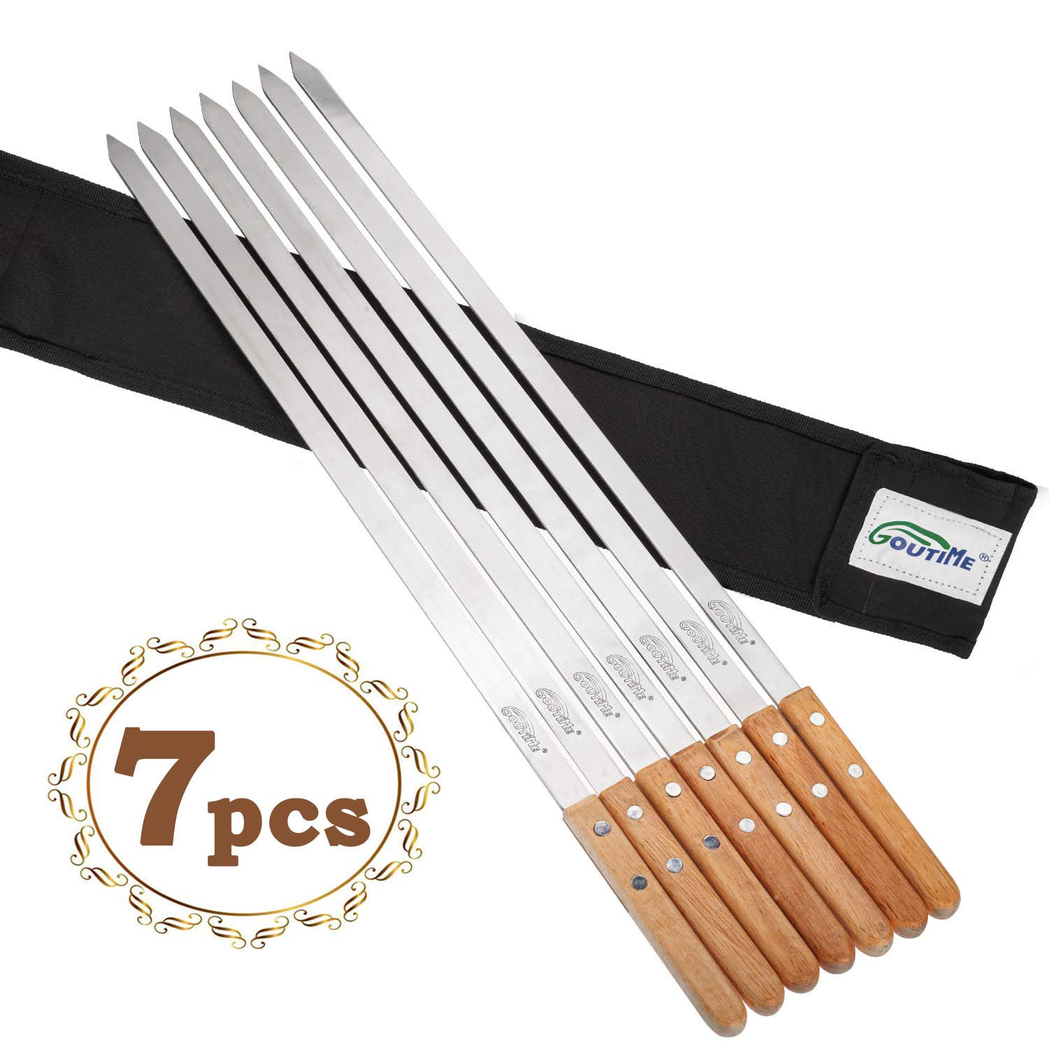 Goutime GrillspießeEdelstahl, 7 Stück, Holzgriffe, mit Tasche