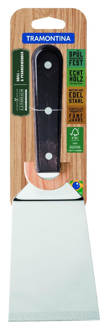 - Der Grillwender von Tramontina hat eine Länge von 27 cm und eine Breite von 9 cm, was ihn ideal für das Wenden von Grillgut macht.