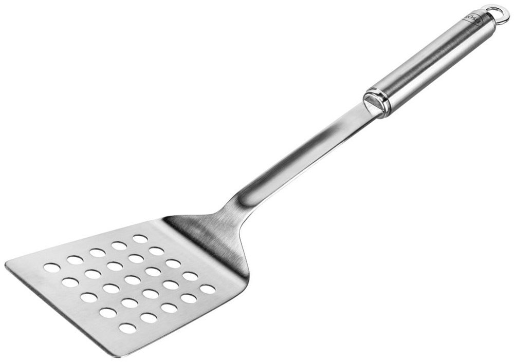 - Der RÖSLE Barbecue-Wender verfügt über eine schräg angeschliffene Kante, die das Lösen von Fleisch vom Rost erleichtert.