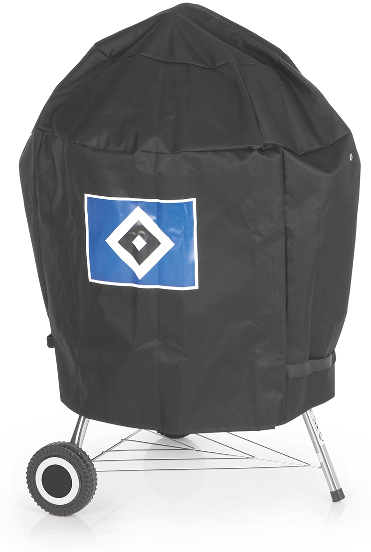 Die HSV Wetterschutzhaube S in Schwarz mit Vereinslogo schützt Ihren Grill zuverlässig vor Witterungseinflüssen wie Sonne, Regen und Schnee. Hergestellt aus robustem, reißfestem Polyestergewebe, ist sie wasserdicht, UV- und kältebeständig. Sechs Ventilationsöffnungen sorgen für eine ständige Luftzirkulation, um Staunässe, Rost und Schimmel zu vermeiden. Mit einer Lichtechtheit von Stufe 6 bleibt die HSV-Raute auch bei Sonneneinstrahlung farbintensiv. Ideal für runde Grills mit Aufbaumaßen von Ø 70x90 cm. **Highlights** - Robustes Polyestergewebe für hohe Langlebigkeit - Reißfest und wasserdicht für optimalen Schutz - UV- und kältebeständig für alle Wetterbedingungen - Sechs Ventilationsöffnungen zur Vermeidung von Staunässe - Lichtechtheit Stufe 6 für farbintensive Darstellung **Produkteigenschaften** - Farbe: Schwarz mit HSV-Vereinslogo - Maße (Ø x H): 70x90 cm