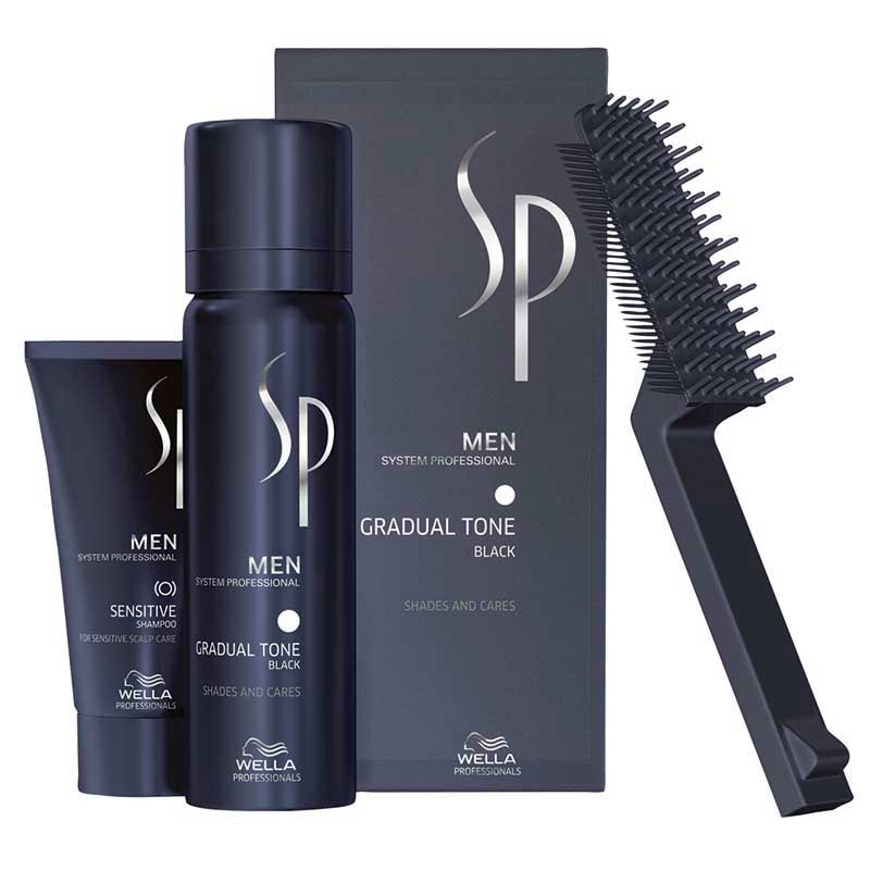 - Das Wella SP Men Gradual Tone Black Pigment Mousse ermöglicht eine stufenweise Rückkehr zur Naturhaarfarbe ab einem Grauanteil von 70%.