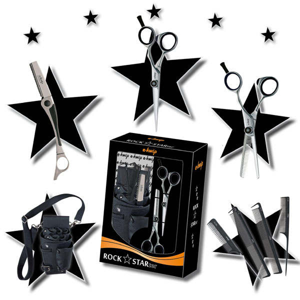 - Das Rock Starter Haarschneidescheren-Set enthält eine 5,5 Zoll lange Haarschere in ergonomischer Form