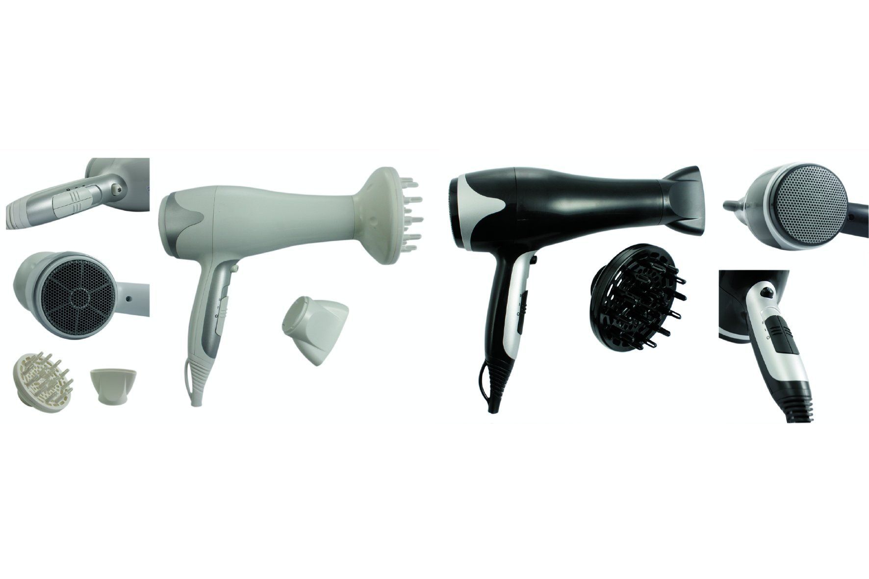 | Stylingdüsen-Aufsatz | - | Ja | Ja | 2 Stylingdüsen (7 mm und 11 mm) | Ja | 5 Styling-Aufsätze: 2 Lockenaufsätze, Ovalbürste, Paddelbürste, Konzentrator, Diffusor. | ja | Ja | Formdüse 360° drehbar (abnehmbar) | - | ja | - | Kompatibel mit dem ghd air Diffusor. | Ja | 2 Aufsätze | - | Cool Touch Stylingdüse | - | ja | Anti-Frizz-Düse | - |