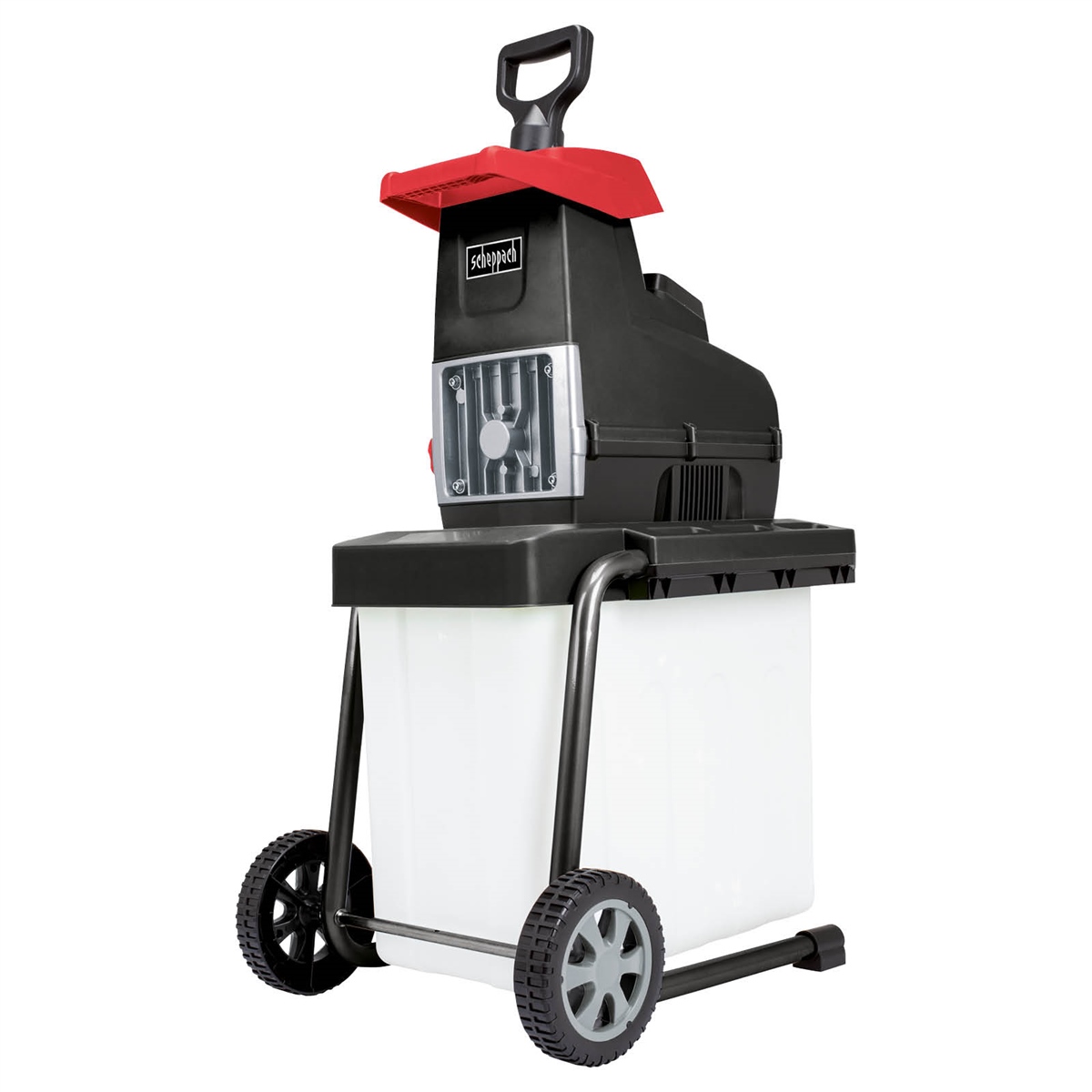 in HäckslerScheppach GS60 Elektro-Gartenhäcksler + Fahrvorrichtung - 2in1 leisehäcksler2800 Watt Leistung, Schnittstärke 45 mm, 60l Fangbox, Selbsteinzug und Rücklauf, mit Nachstopfer, Handschuhe und Gartenschere