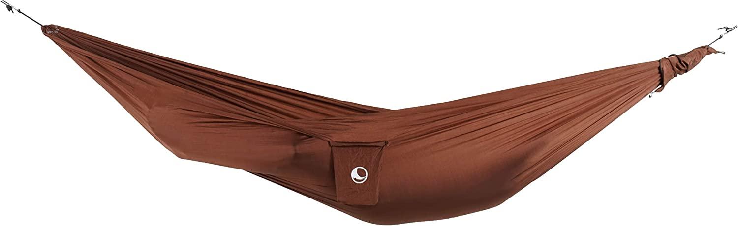 Die Ticket to the Moon Compact Hängematte in schokoladenbraun ist die ideale Wahl für Minimalisten und Reisende. Mit einem Gewicht von nur 480 g und kompakten Maßen von 3,2x1,55 m passt sie in jede Tasche. Diese handgefertigte Hängematte bietet Komfort und Langlebigkeit, ist OEKO-TEX zertifiziert und ermöglicht dank der patentierten Express-Settings Tasche eine schnelle und einfache Aufhängung. Genießen Sie entspannte Momente in der Natur mit einem Produkt, das Fair-Trade-Standards unterstützt. **Highlights** - Minimalistisch und leicht – ideal für unterwegs - Handgefertigte Qualität seit 1996 mit 10 Jahren Herstellergarantie - Zertifiziert haut- und humanfreundlich (OEKO-TEX) - Patentierte Express-Settings Tasche für schnelle Aufhängung - Nachhaltige Produktion mit Fair-Trade-Standards **Produkteigenschaften** - Maße: 3,2x1,55 m - Gewicht: 480 g - Empfohlene Aufhängung: TTTM Lightest Strap - Atmungsaktiv und bequem mit angenehmen Stichen **Lieferumfang** - 1x Ticket to the Moon Compact Hängematte - 1x S-Haken - Ausschluss von Zubehör wie Aufsätzen, Planen und Moskitonetzen