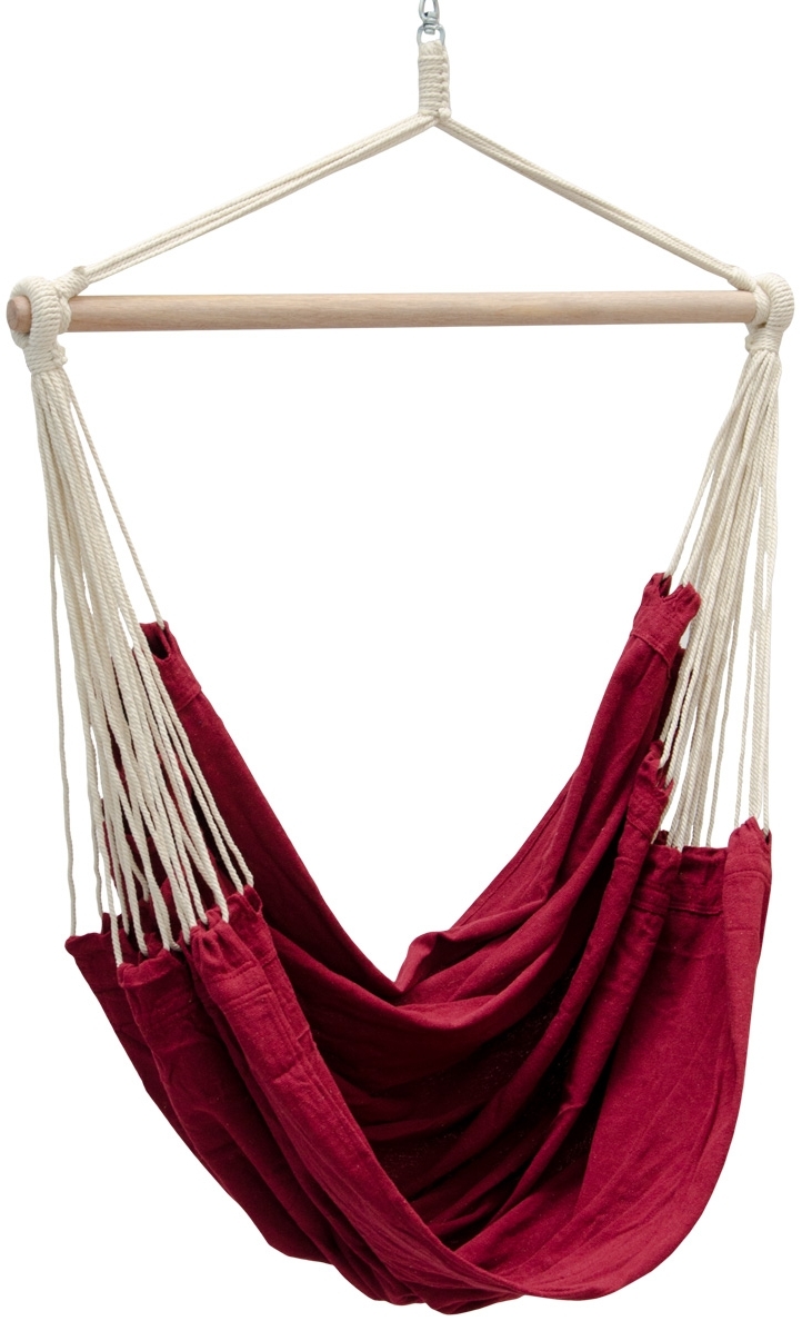 Der Amanka Hängesessel XXL in Rot bietet mit seinen großzügigen Abmessungen von 185 x 130 cm ausreichend Platz für Kinder und Erwachsene. Er ist bis zu 150 kg belastbar und eignet sich somit auch für zwei Personen. Das feste Hängetuch entlastet die Wirbelsäule und schont die Gelenke. Mit einer Aufhängehöhe von ca. 155 cm und einem stabilen Holzstab ist er sowohl für den Innen- als auch Außenbereich geeignet. **Highlights** - Riesengroße Sitzfläche für ultimativen Komfort - Entlastet die Wirbelsäule und schont die Gelenke - Belastbar bis zu 150 kg - Geeignet für zwei Personen - Inklusive Aufhängung mit 360° Drehwirbel **Produkteigenschaften** - Abmessungen: 185 x 130 cm - Material: 320 g/m² 100% Baumwolle - Aufhängehöhe: ca. 155 cm - Holzstab: 100 x Ø 4 cm - Drehschutz: 1 x Swivel **Lieferumfang** - Amanka Hängesessel XXL - Aufhängung mit 360° Drehwirbel