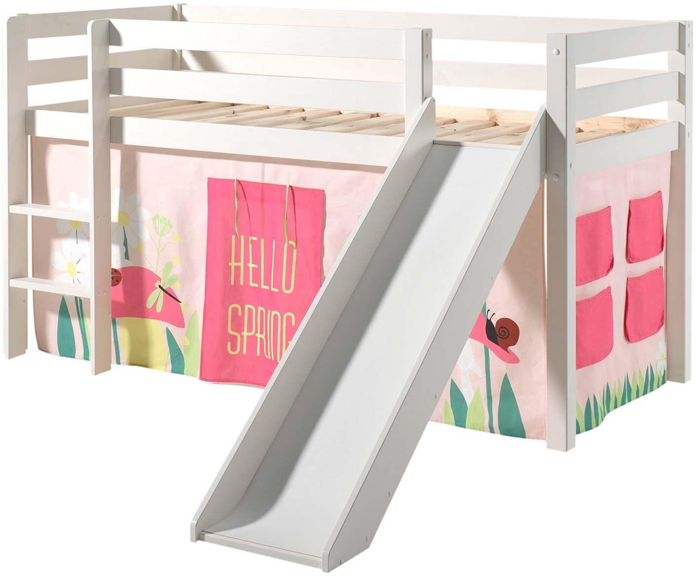 Vipack 'Pino' Halbhochbett weiß inkl. Rutsche und Vorhang 'Spring'