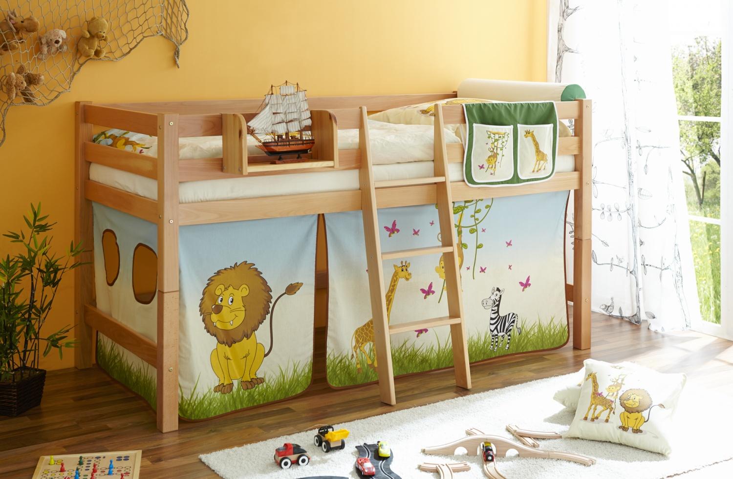 | Name | Ticaa 'Tipsi' Halbhochbett natur, inkl. Vorhang 'Safari' grün/blau |