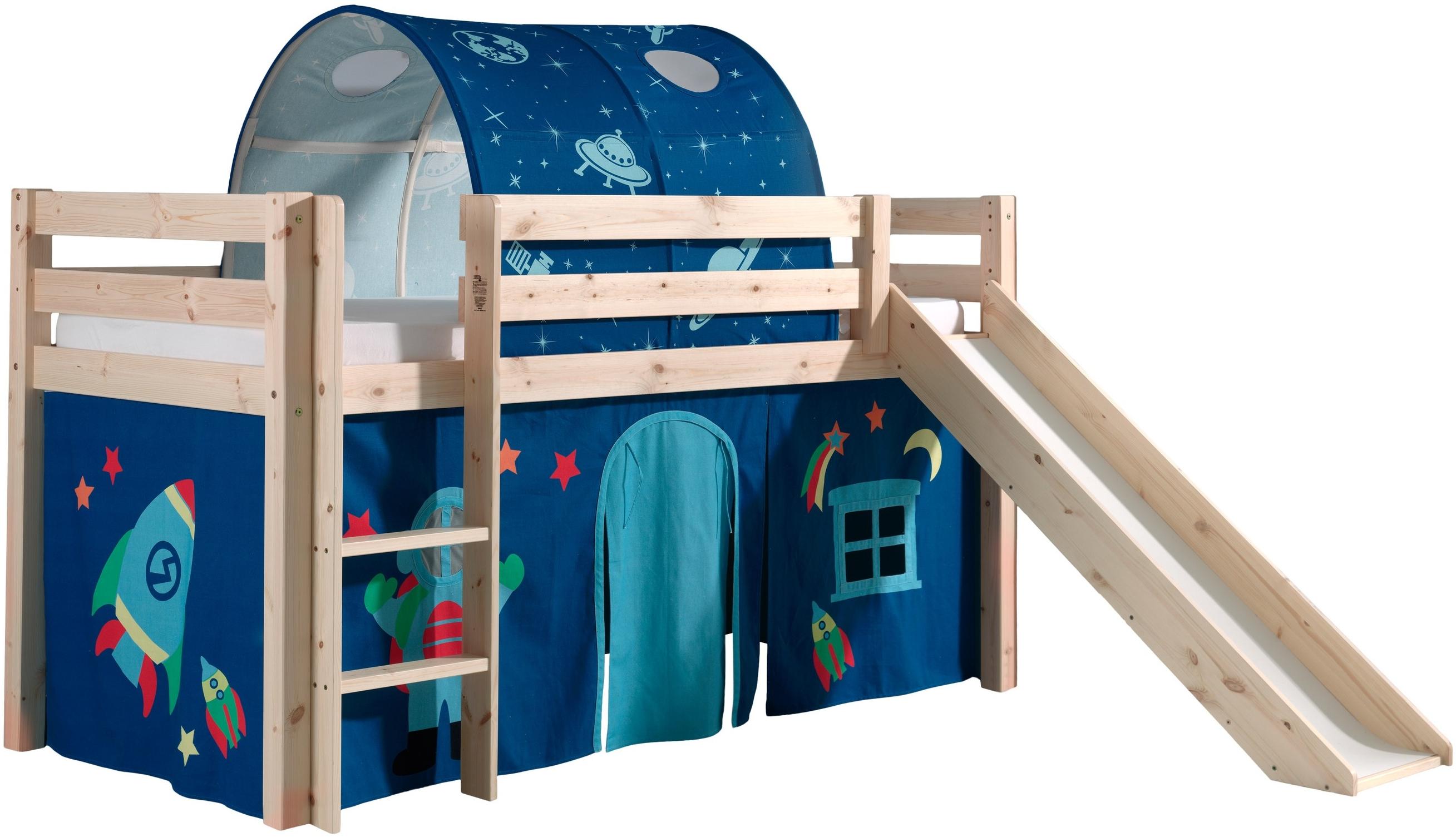 Das Halbhochbett 'Pino' von Vipack bietet Ihrem Kind einen komfortablen Schlafplatz für einen erholsamen Schlaf. Durch sein einfaches und spielerisches Design passt es sich an jede vorhandene Einrichtung an. **Besonderheiten** - Rutsche als spielerische Ausstattung - Vorhang im Astronauten-Design lässt Ihr Kind in eine ferne Galaxie abtauchen - Benötigte Höhe mit Tunnel 214 cm - Gerade Leiter, beidseitig montierbar - Hohe Rundum-Absturzsicherung für einen sicheren Schlaf **Qualität** - Massive und stabile Bauweise - FSC zertifiziertes Holz Das Halbhochbett von Vipack ist nur für Kinder geeignet, die eigenständig sitzen, stehen und die Leiter allein hinauf und hinab klettern können