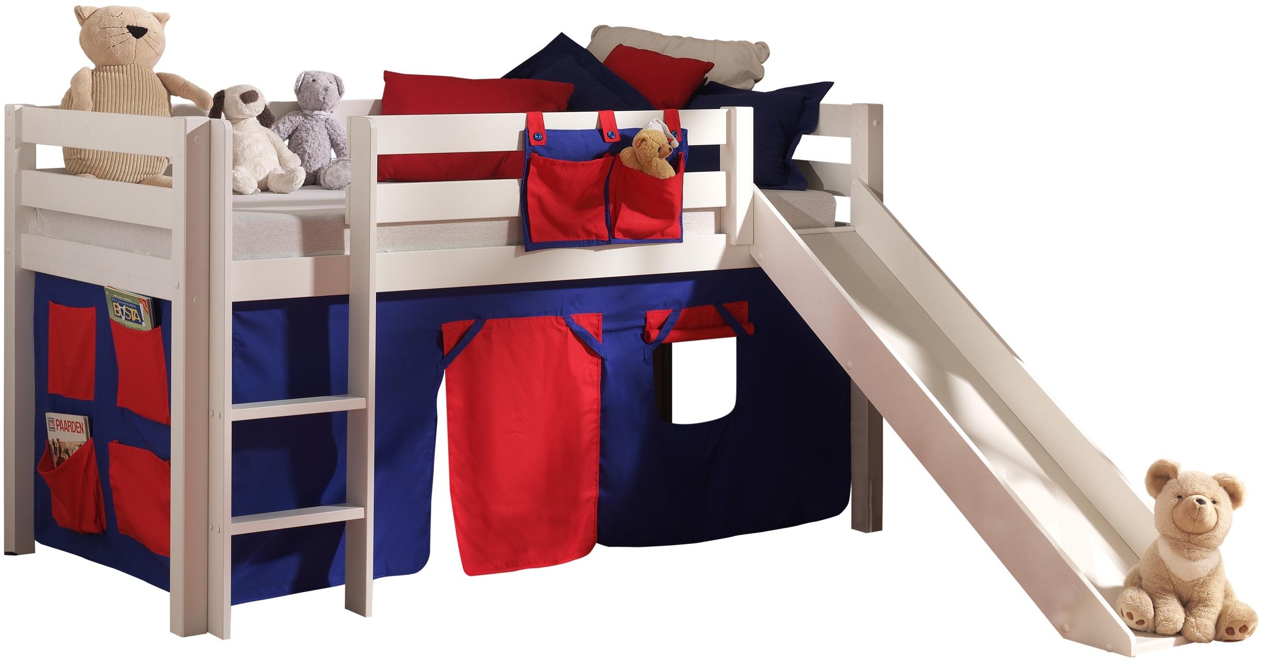 Vipack 'Pino' Halbhochbett naturinkl. Rutsche, Vorhang 'Spring' und Betttaschen