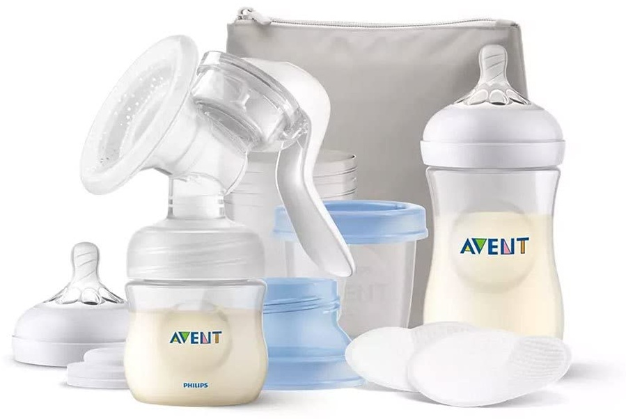- Das Set enthält eine Milchpumpe, zwei Babyflaschen in unterschiedlichen Größen und Einweg-Stilleinlagen