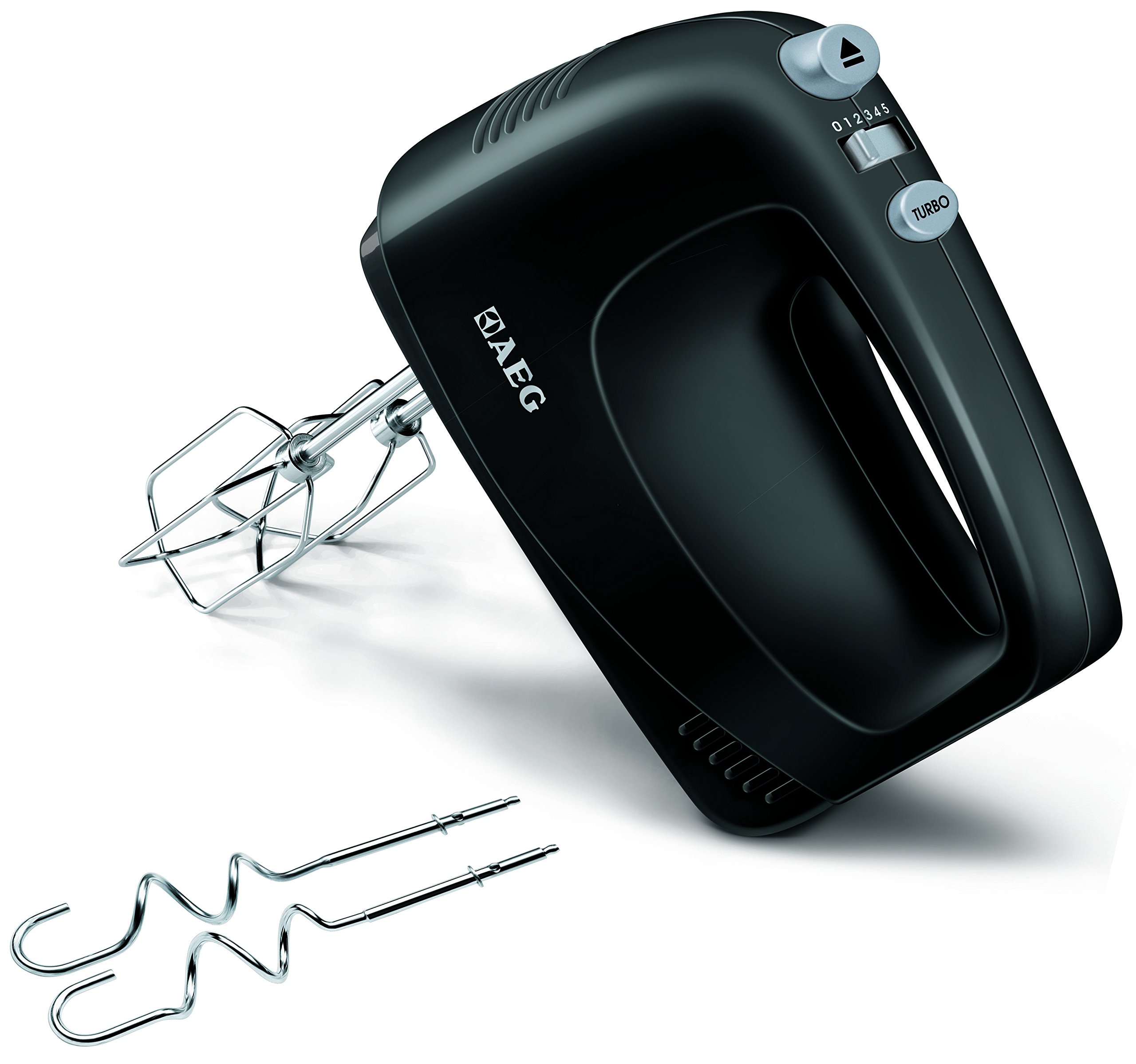 in HandmixerAEG PerfectMix HM 1250 Handrührer Handmixer Set (5 Geschwindigkeitsstufen, Turbo-Stufe für Höchstleistung, Edelstahl-Rührbesen und -Rührer, spülmaschinenfest) Schwarz/Silber