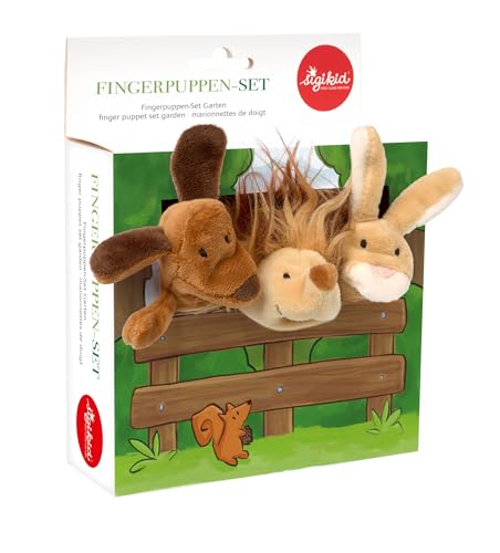 - Das sigikid 43015 Fingerpuppen Set in braun/beige/Garten bietet fröhlichen Spielspaß mit den Gartentieren Igel, Hund und Hase