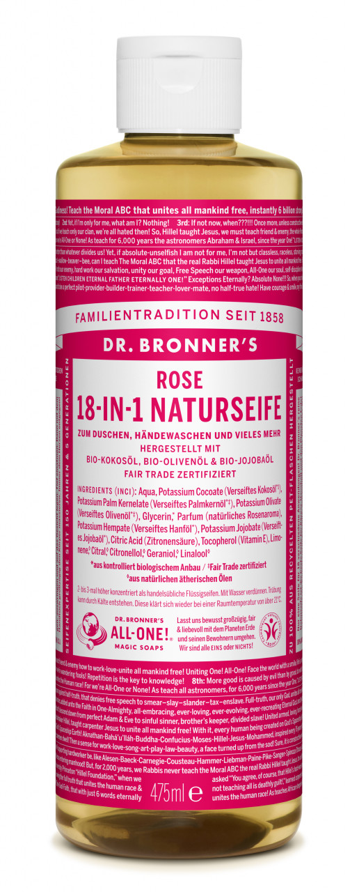 - Dr. Bronner's Flüssigseife Rose ist für alle Hauttypen geeignet