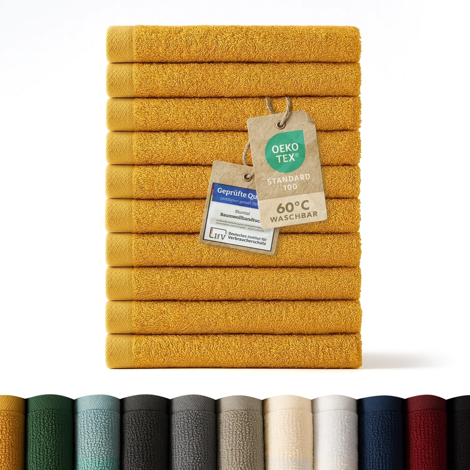 Blumtal Gästehandtücher 30x30 cm sind die perfekte Wahl für Ihr Badezimmer. Hergestellt aus 100 % Baumwolle mit einem Flächengewicht von 500 g/m², bieten diese Handtücher eine hohe Saugfähigkeit und sind besonders weich. Sie sind schnelltrocknend, formstabil und können bei 60 °C in der Maschine gewaschen werden. Die modische Bordüre und die praktische Aufhängeschlaufe sorgen für ein stilvolles Ambiente. **Highlights** - 100 % Baumwolle für hohe Saugfähigkeit - Flächengewicht von 500 g/m² für extra Weichheit - Schnelltrocknend und formstabil - Waschbar bei 60 °C für einfache Pflege - Modische Bordüre und praktische Aufhängeschlaufe **Produkteigenschaften** - Maße: 30x30 cm - Set-Bestandteile: 12 Gästehandtücher - Trocknung im Wäschetrockner empfohlen **Lieferumfang** - 12 x Gästehandtücher 30x30 cm - Bade- oder Saunatuch nicht enthalten