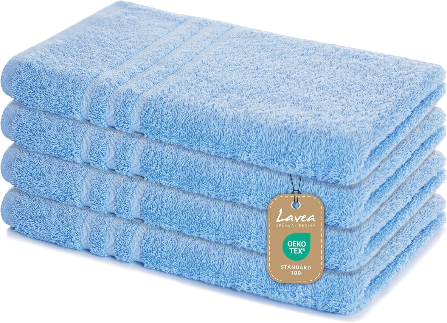 Lavea 4er Set Handtuch 50x100 cm in Delphinblau aus der Frottierserie Elena. Diese hochwertigen Handtücher bestehen aus 100% Baumwolle und bieten eine hohe Saugfähigkeit sowie Strapazierfähigkeit. Sie sind waschbar bei 60 °C und trocknergeeignet. Mit einem Gewicht von ca. 500 g/m² erfüllen sie höchste Ansprüche an Qualität und Komfort. Die OEKO-TEX Zertifizierung (Reg. Nr. 2011PK0067) garantiert, dass die Handtücher frei von schädlichen Substanzen sind. **Highlights** - 100% Baumwolle für ein angenehmes Hautgefühl - Waschbar bei 60 °C und trocknergeeignet - Saugstark und strapazierfähig für den täglichen Gebrauch - OEKO-TEX zertifiziert (Reg. Nr. 2011PK0067) für umweltfreundliche Herstellung - Zeitloses Design in modernen Farben **Produkteigenschaften** - Maße: 50x100 cm - Gewicht: ca. 500 g/m² - Farbe: Delphinblau - Formstabil und farbecht auch nach vielen Wäschen **Lieferumfang** - 4 x Handtuch 50x100 cm - Ausschluss von weiteren Produkten