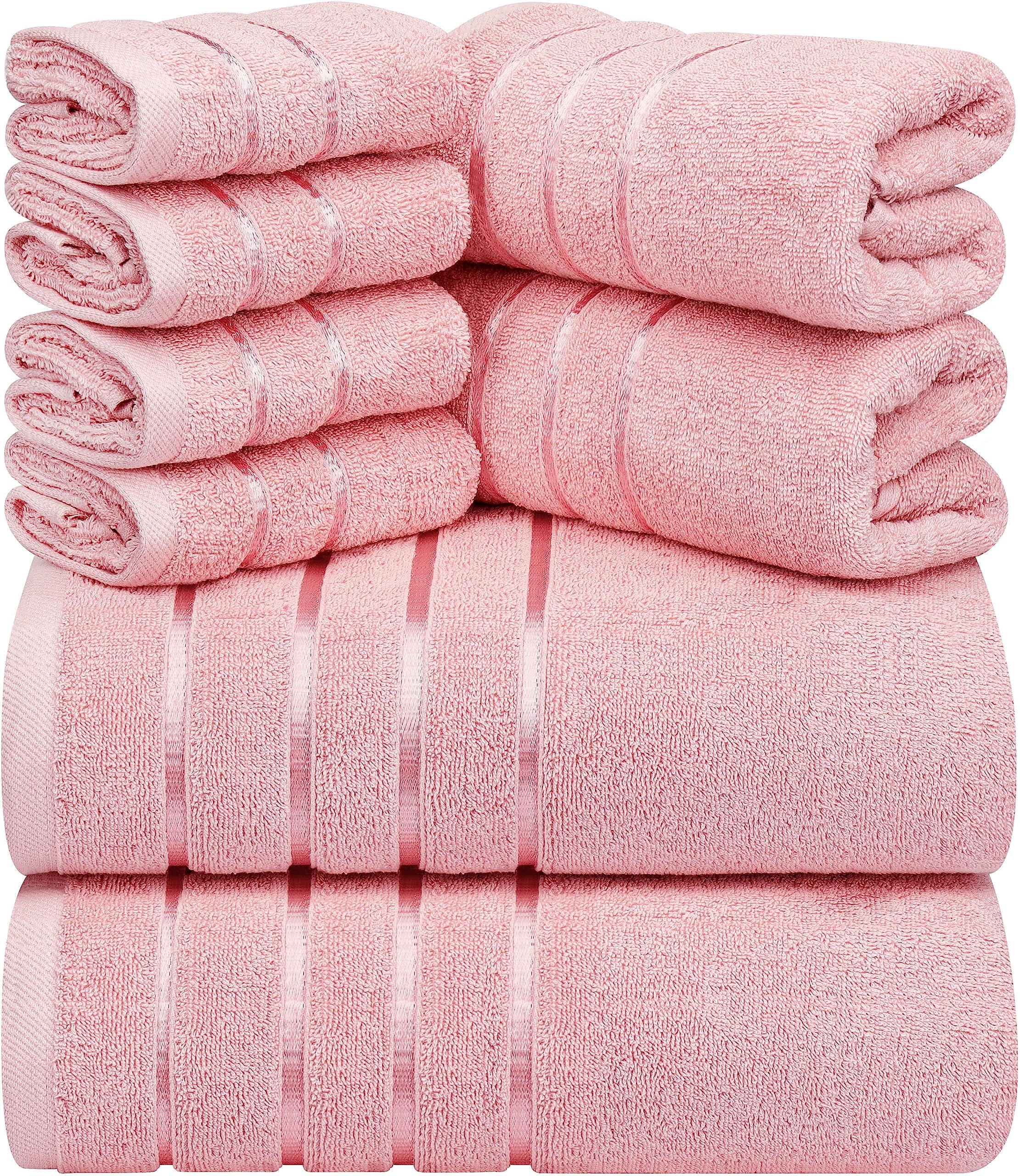 in Handtuch SetsUtopia Towels 8-teiliges Luxus-Handtuch-Set2 Badetücher, 2 Handtücher und 4 Waschlappen, 600 g/m², 100% ringgesponnene Baumwolle, sehr saugfähige Viskose-Streifen-Handtücher, ideal für den