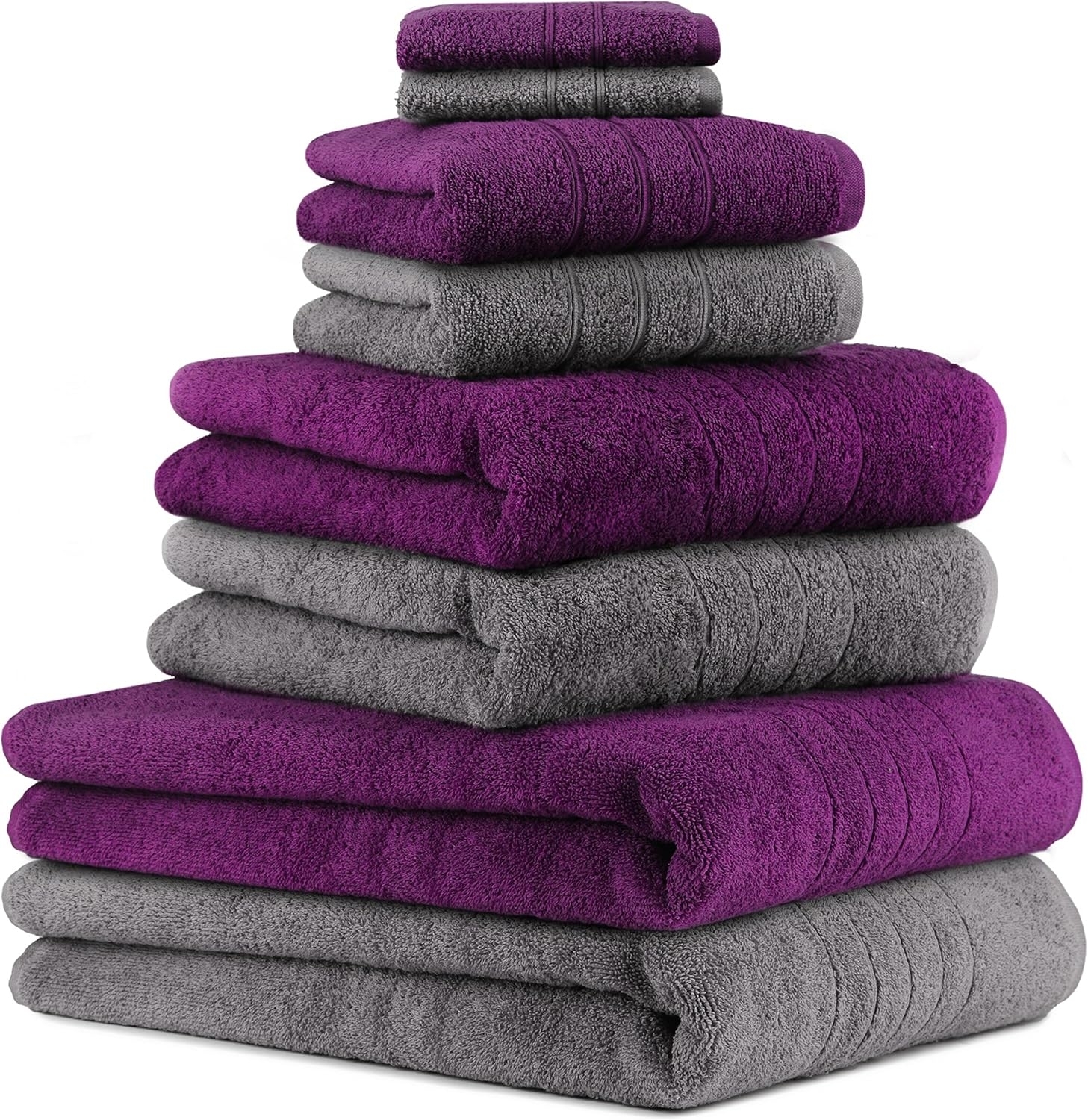 | Name | Betz Handtuch Set 8-TLG. Handtuch-Set Deluxe Farbe anthrazit grau und Pflaume, 100% Baumwolle (Set, 8-St) |