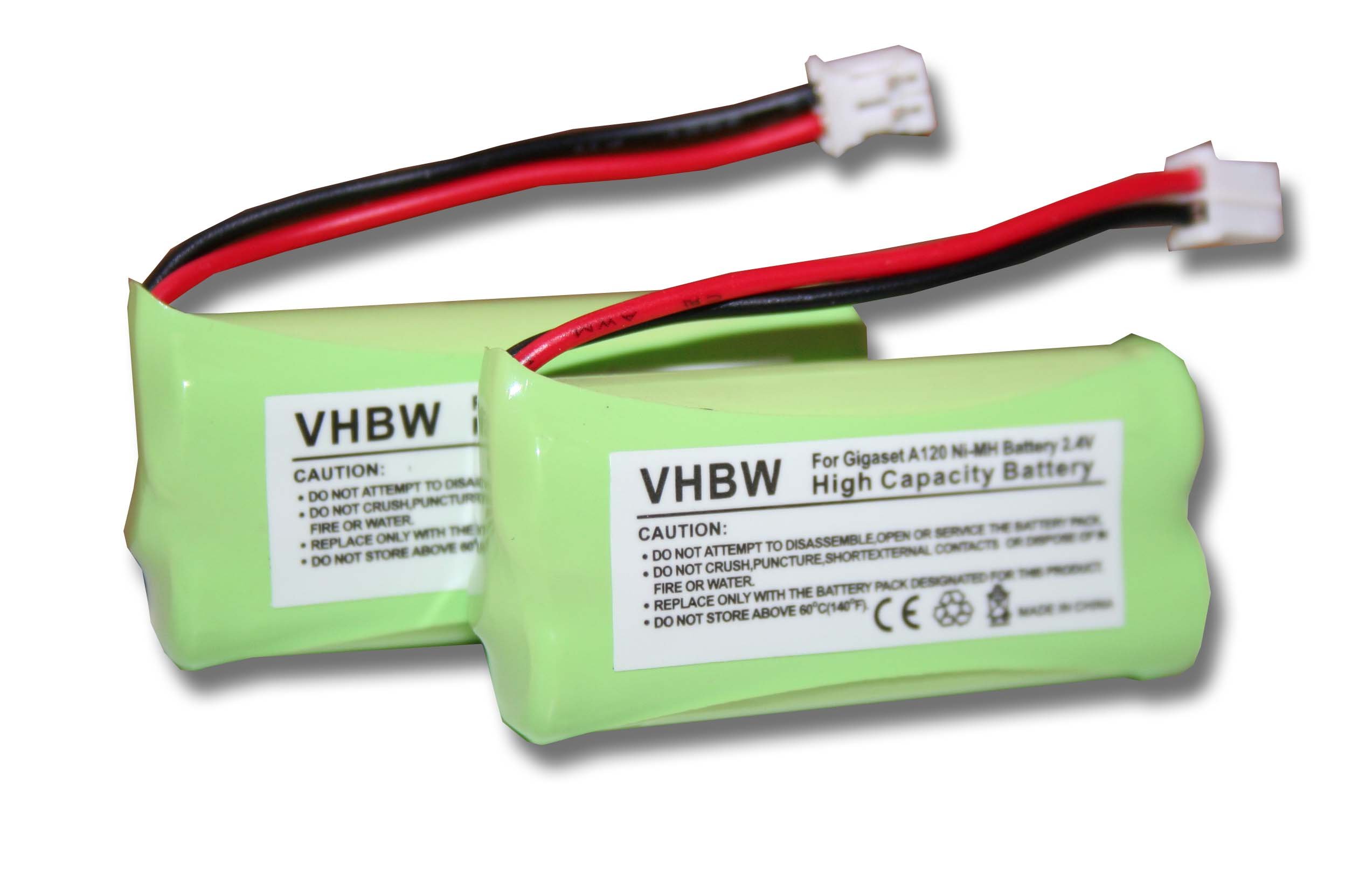 vhbw 2x NiMH Akku Set 700mAh (2.4V) für Telefon, Festnetz Siemens Gigaset A12, A14, A24, A26, A145, A260, AS140, AL4H, Q063, Universum CL15, SL15