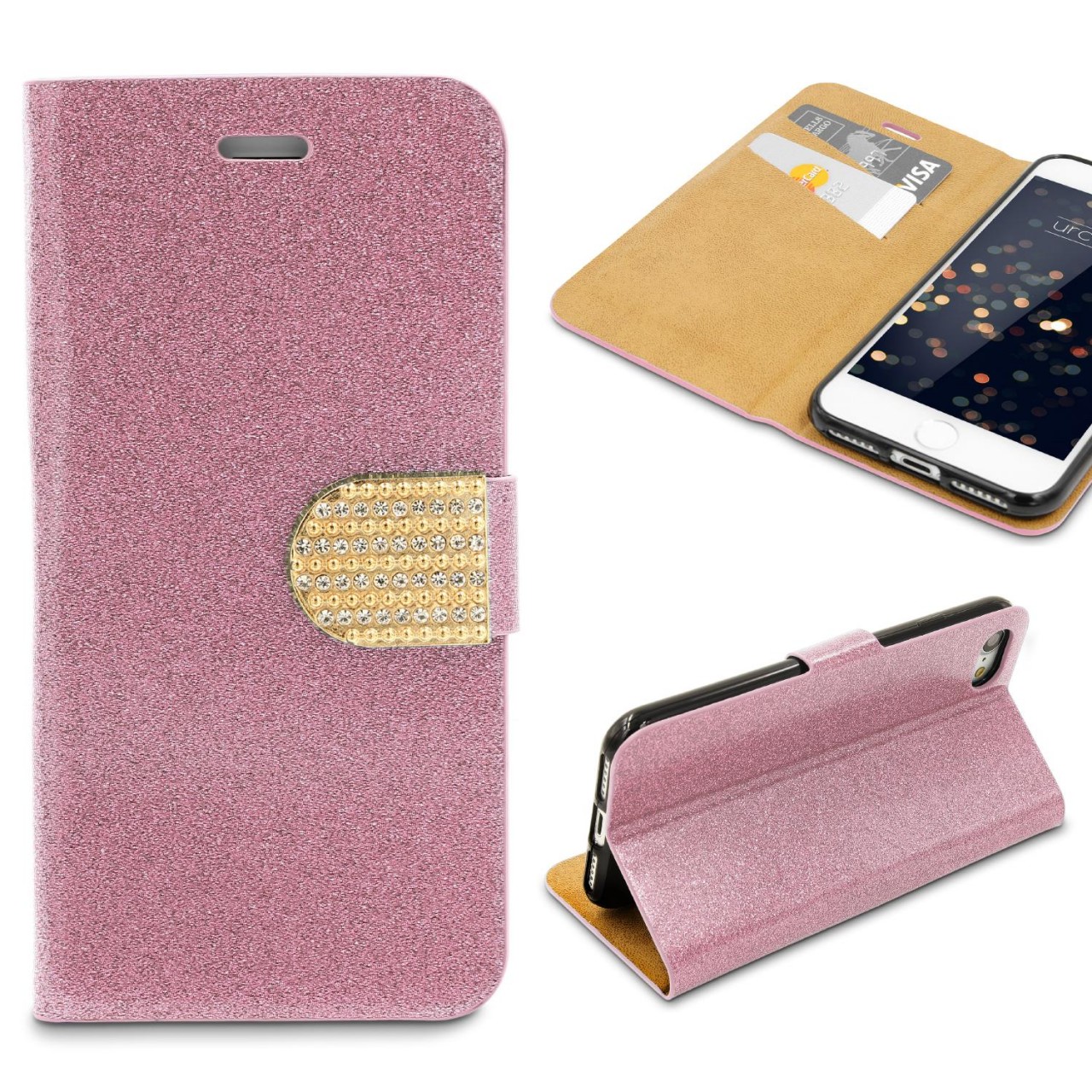 in Handy-ZubehörUrcover Apple iPhone 7 Kunststoff Wallet/Standfunktion/Kartenfach Rosa Bling Glitzer