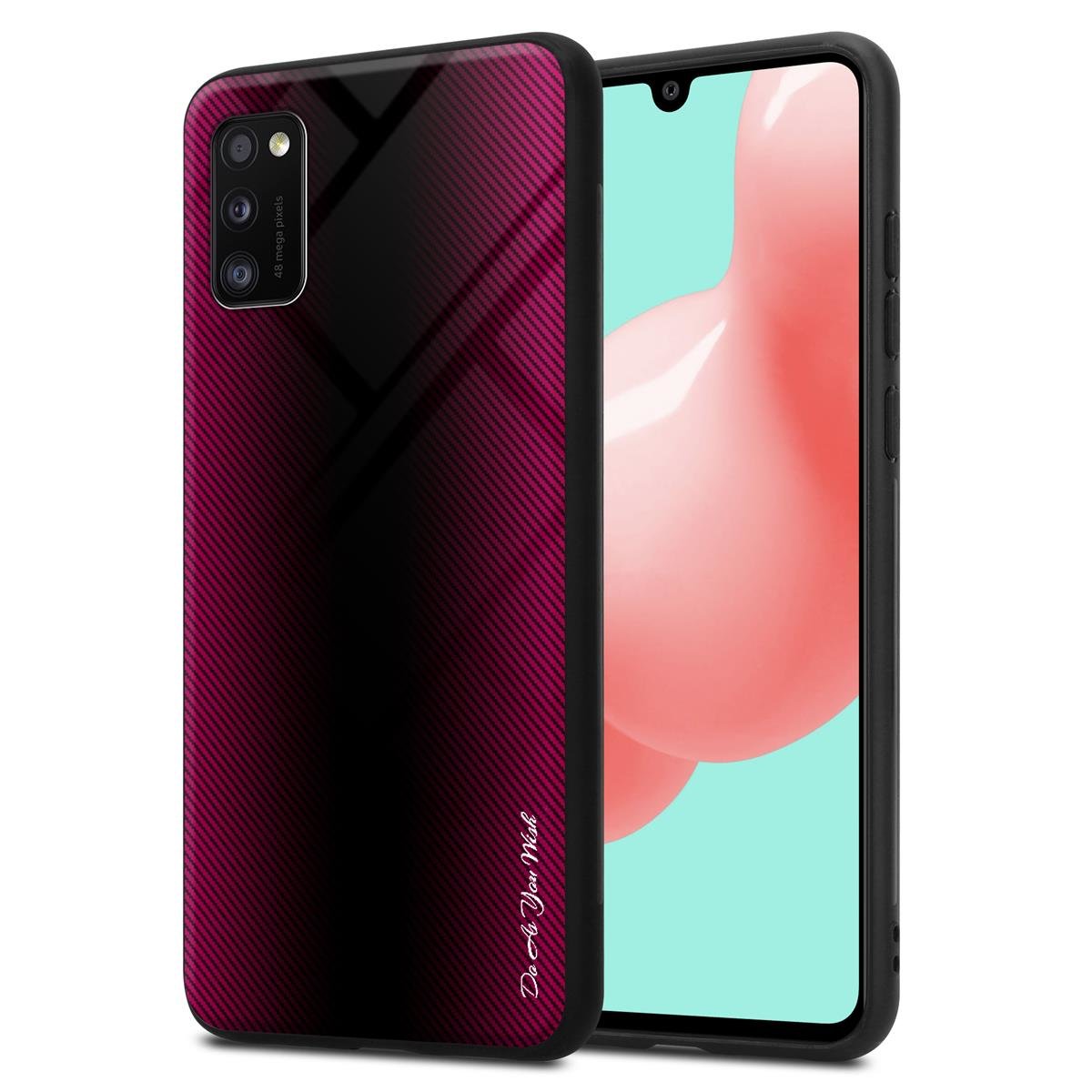 in HandyhüllenCadorabo Hülle kompatibel mit Samsung Galaxy A41 - Streifen Optik in PURPUR PINK - Handyhülle aus TPU Silikon und Tempered Glas - Silikonhülle Schutzhülle Ultra Slim Back Cover Case Bumper