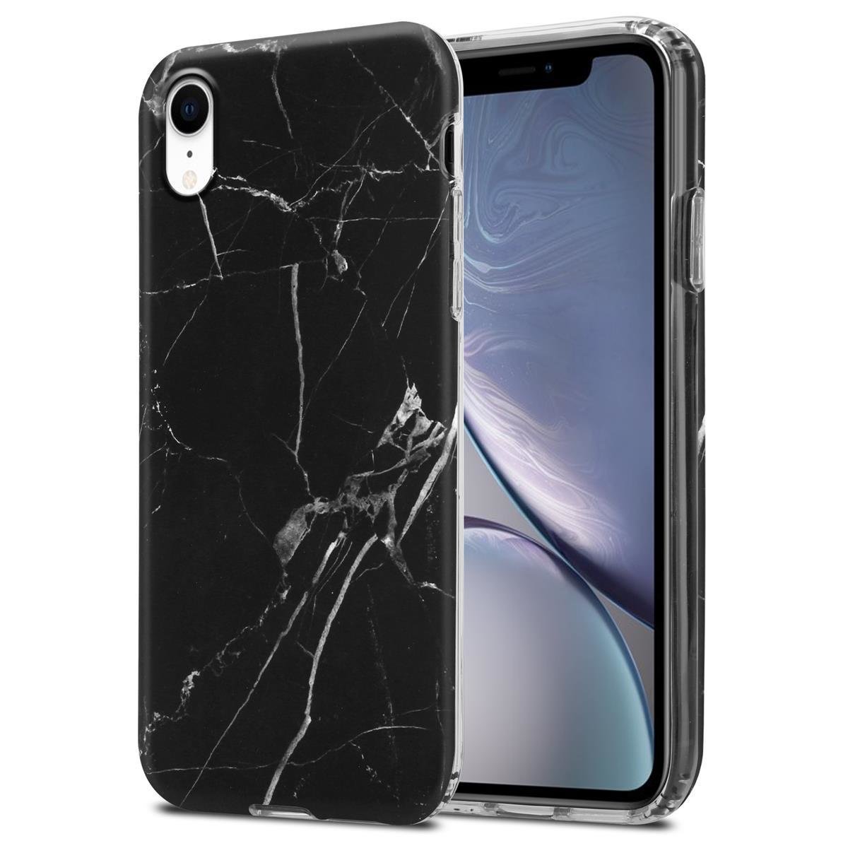 Cadorabo Hülle kompatibel mit Apple iPhone XR - Hülle in Schwarz Weiß Marmor No. 22 – Handyhülle aus TPU Silikon mit Muster Mosaik - Silikonhülle Schutzhülle Ultra Slim Back Cover Case Bumper