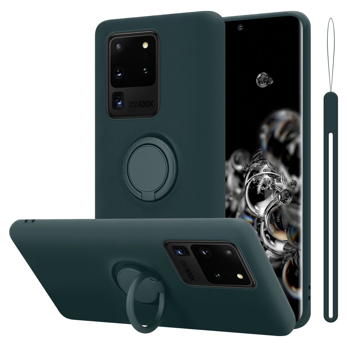 Cadorabo Hülle kompatibel mit Samsung Galaxy S20 Ultra in LIQUID GRÜN - Handyhülle aus flexiblem TPU Silikon mit Ring - Silikonhülle Schutzhülle Ultra Slim Soft Back Cover Case Bumper