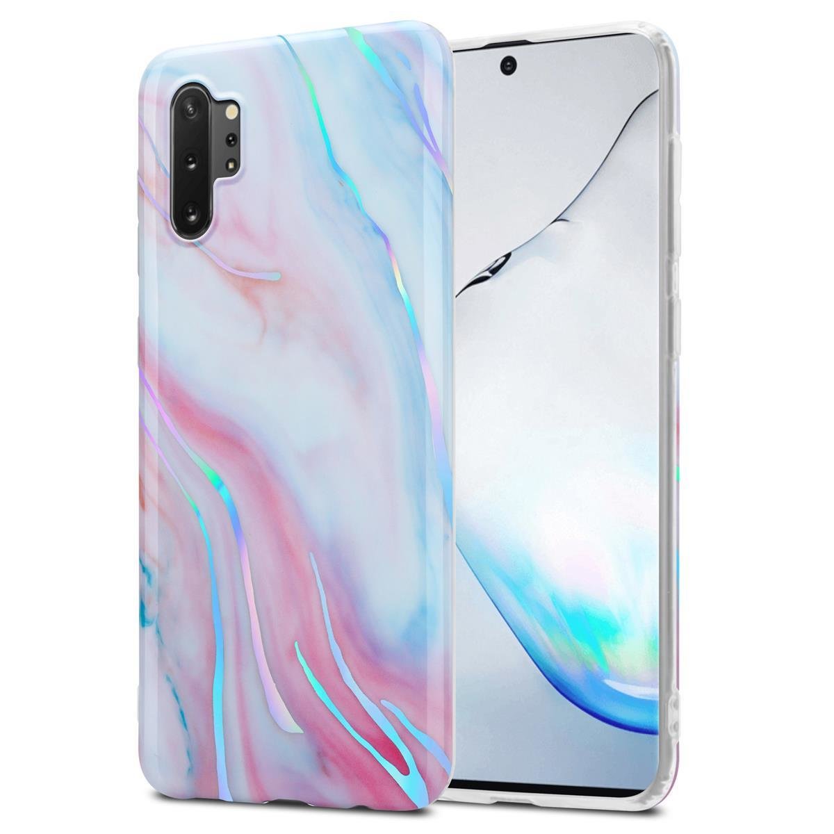 in HandyhüllenCadorabo Hülle kompatibel mit Samsung Galaxy Note 10 Plus - Hülle in Weiß Pink Marmor No. 15 – Handyhülle aus TPU Silikon mit Muster Mosaik - Silikonhülle Schutzhülle Ultra Slim Back Cover Case Bumper