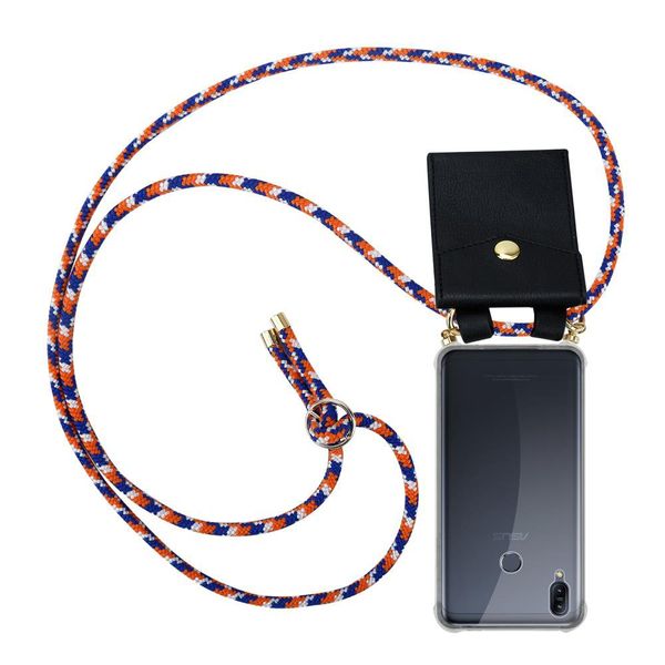 in Handytaschencadorabo Handykette für Asus ZenFone Max M2 in ORANGE BLAU WEISSSilikon Necklace Umhänge Hülle mit Gold Ringen, Kordel Band Schnur und abnehmbarem Etui Schutzhülle