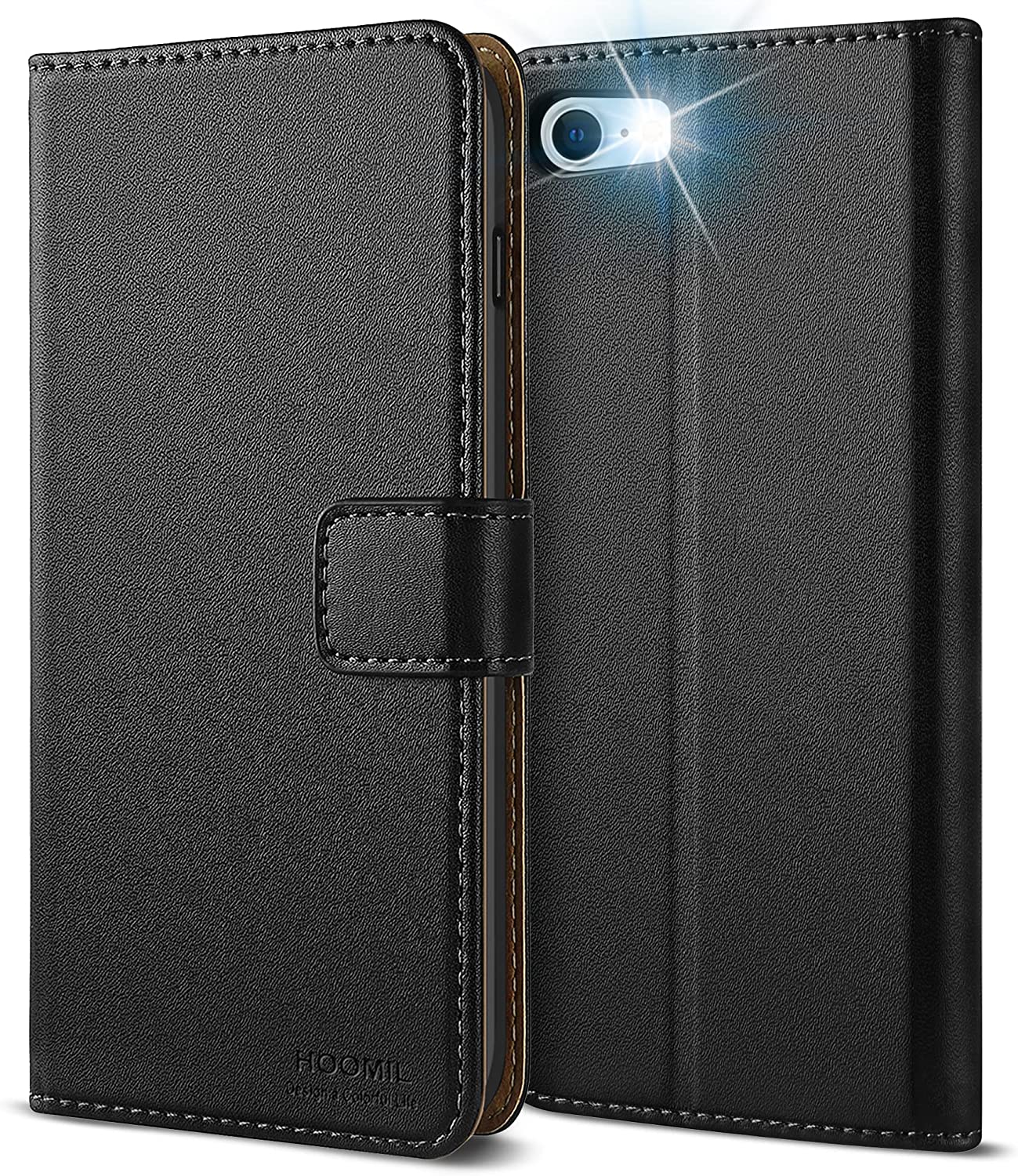 HOOMIL iPhone 7 HülleiPhone 8 Hülle [Sorgfältig Hergestellt] Handyhülle iPhone SE 2022/2020 Hülle Leder Flip Case Brieftasche Etui Schutzhülle für iPhone SE 2022 5G Cover - Schwarz