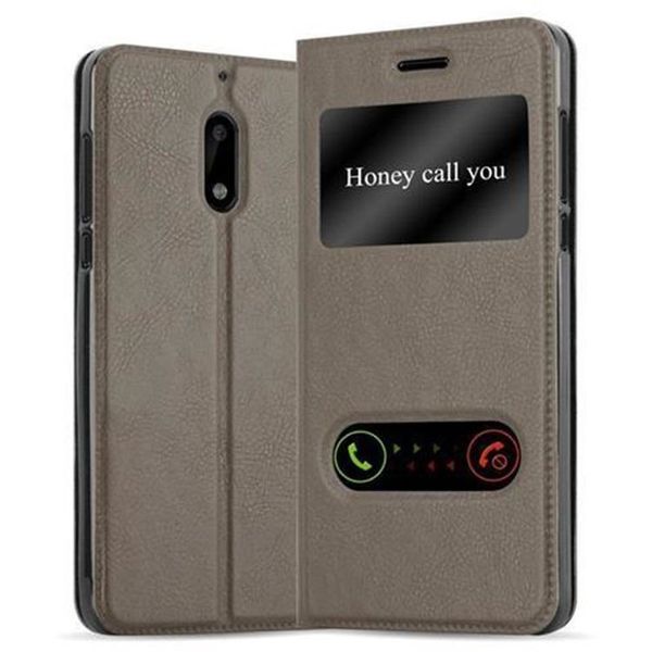 cadorabo Hülle für Nokia 6 2017 in STEIN BRAUN Handyhülle mit MagnetverschlussStandfunktion und 2 Sichtfenstern Case Cover Schutzhülle Etui Tasche Book Klapp Style