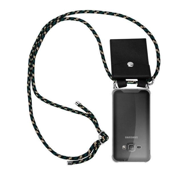 in Handytaschencadorabo Handykette für Samsung Galaxy J1 2016 in CAMOUFLAGESilikon Necklace Umhängehülle mit Silber Ringen, Kordel Band Schnur und abnehmbarem Etui, SchutzHülle