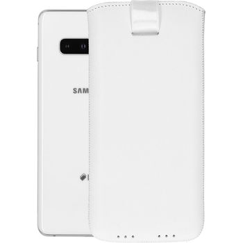 mumbi Leder Etui Tasche mit Ausziehlasche weiß für Samsung Galaxy S10+
