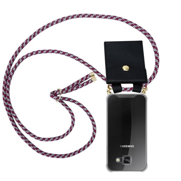 in Handytaschencadorabo Handykette für Samsung Galaxy A3 2016 in ROT WEISSSilikon Necklace Umhänge Hülle mit Gold Ringen, Kordel Band Schnur und abnehmbarem Etui Schutzhülle