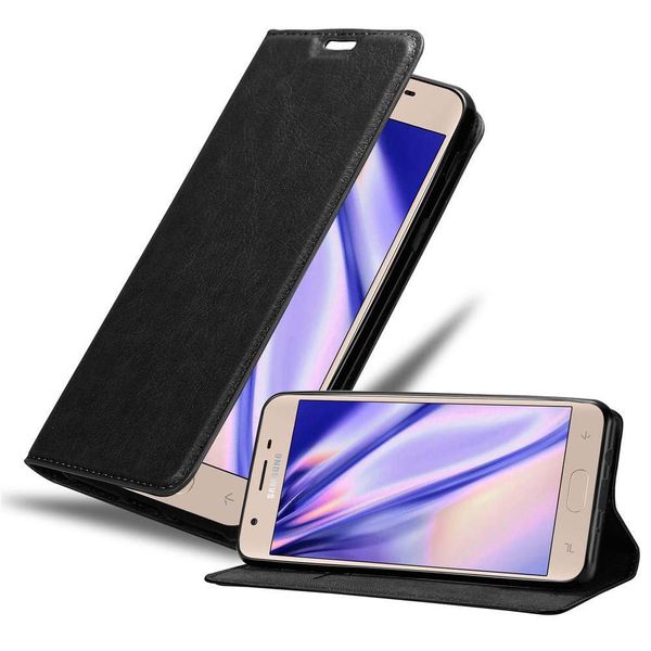cadorabo Hülle für Samsung Galaxy J3 2018 in NACHT SCHWARZHandyhülle mit Magnetverschluss, Standfunktion und Kartenfach, Case Cover Schutzhülle Etui Tasche Book Klapp Style