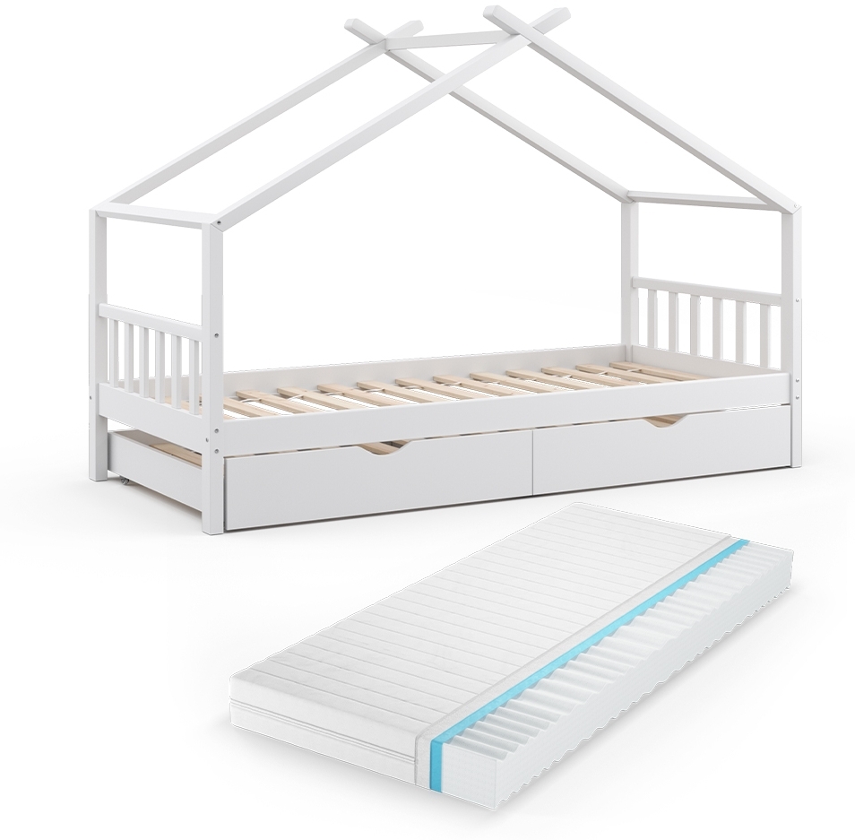 | Name | Hausbett Design Weiß 90x200 cm mit Gästebett und Matratze Vitalispa |